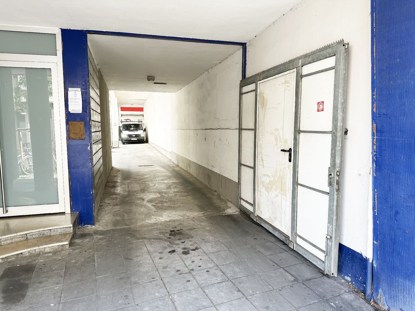 Die Gewerbeeinheit befindet sich im Hinterhof eines in den 1950er Jahren erstellten Mehrfamilienhauses. Die Zufahrt erfolgt über eine Tordurchfahrt (Breite ca. 2,35m + Höhe ca. 2,80m).