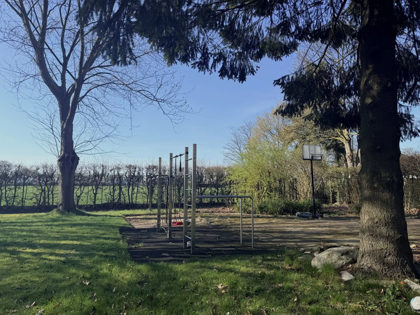 Klettergerüst und Basketballplatz sind bereits vorhanden - der Nachmittag nach der Schule ist gerettet, bevor die Umzugskartons ausgepackt sind.