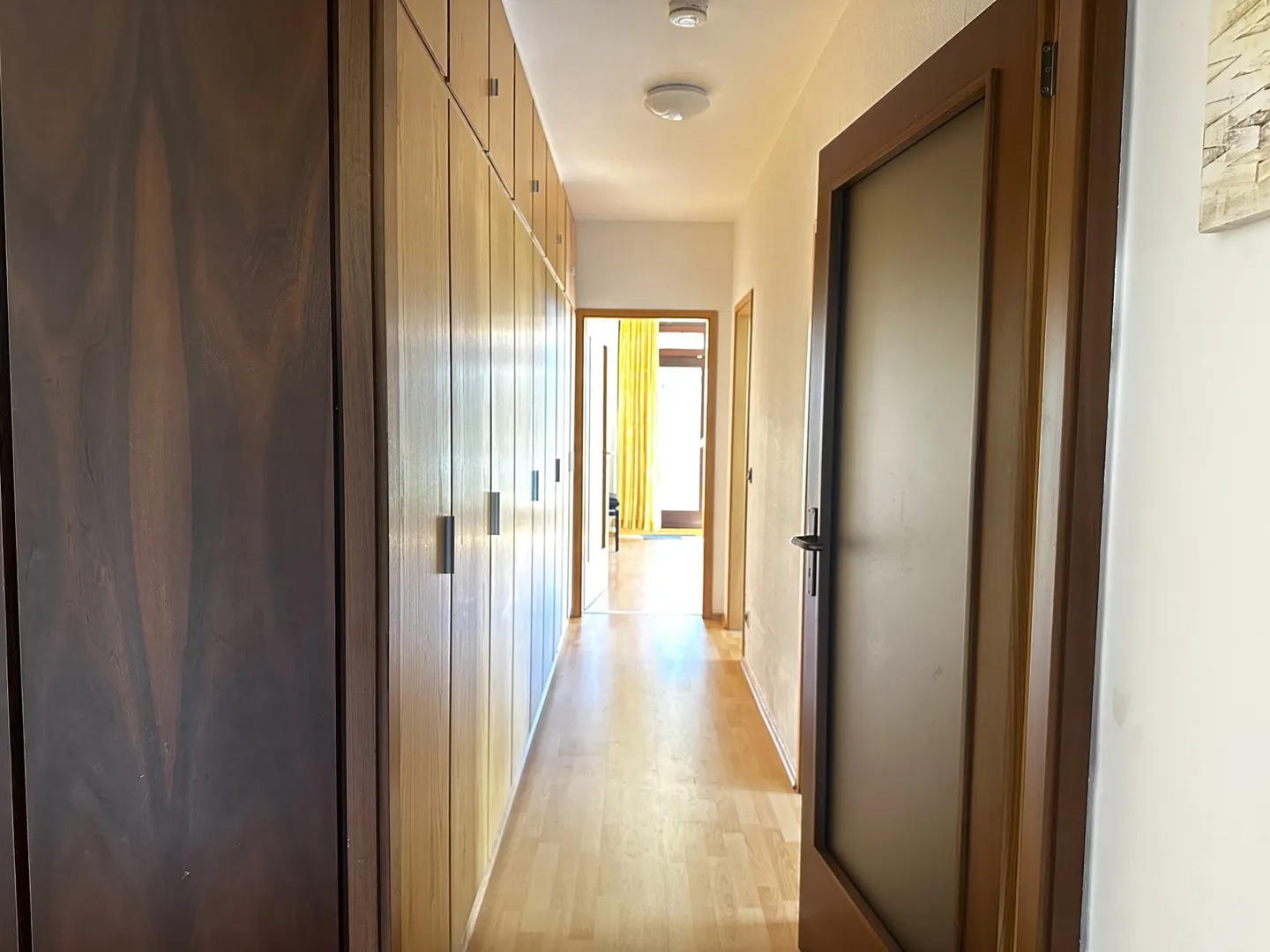 Das Badezimmer ist mit Dusche und Badewanne ausgestattet und wird durch ein separates Gäste-WC ergänzt. Praktische Einbauschränke sorgen für wertvollen Stauraum und unterstreichen die Alltagstauglichkeit der Wohnung.