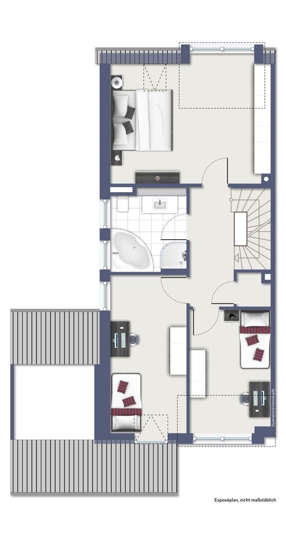Das Studio im Dachgeschoss bietet vielfältige Nutzungsmöglichkeiten - ob als Elternsuite, Büro oder Gästezimmer - und verfügt über ein weiteres Bad.