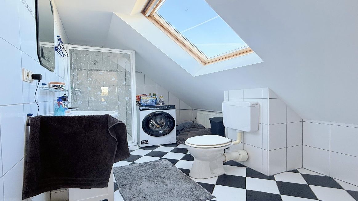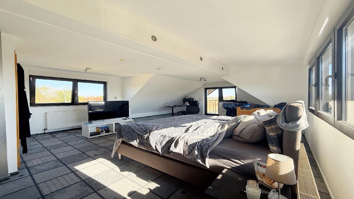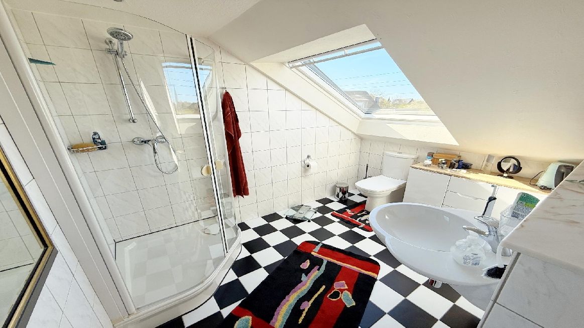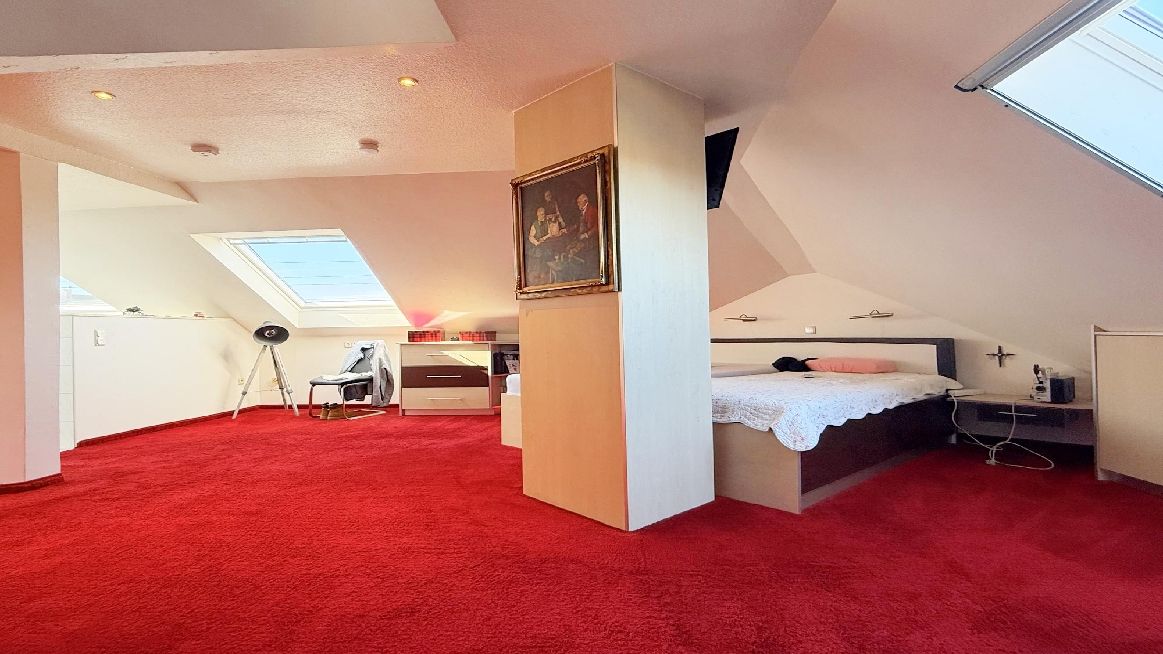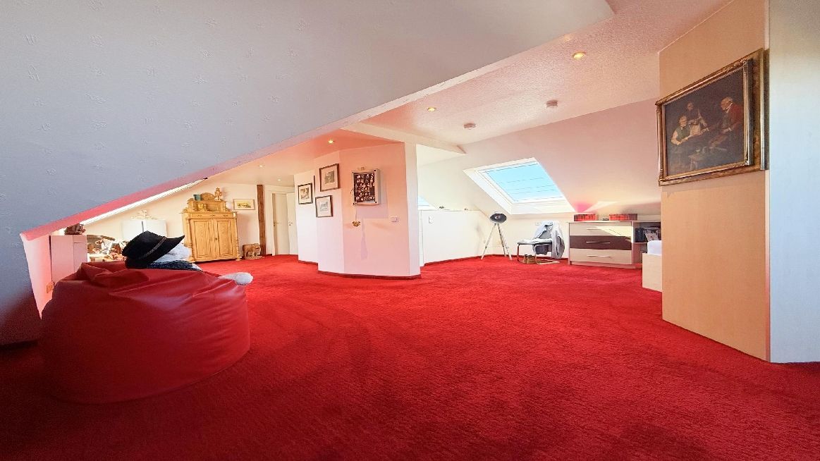 Ein weiteres Highlight ist das wohnlich ausgebaute Dachgeschoss mit rund 70 m², das als zusätzlicher Rückzugsbereich genutzt werden kann. Ein offenes Duschbad und ein Abstellraum runden diese Ebene ab.