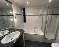 Das modern gestaltete Badezimmer ist sowohl mit einer Badewanne als auch einer Dusche ausgestattet und begeistert ebenso wie das separate Gäste-WC mit hochwertigen Materialien und edlen Granitelementen. Hier zeigt sich Liebe zum Detail in jeder Ecke.
