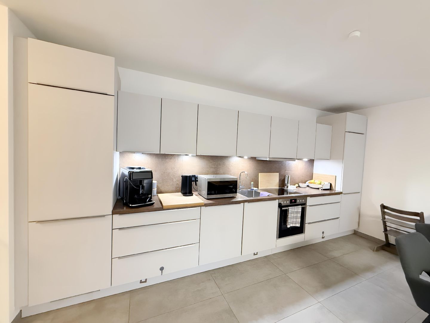 Diese moderne 3-Zimmer-Erdgeschosswohnung aus dem Baujahr 2019 überzeugt mit einem großzügigen, lichtdurchfluteten Wohn-/Essbereich mit Platz für eine offene Küche, zwei gut geschnittenen Schlafzimmern sowie einem stilvollen Bad mit bodengleicher Dusche und Wanne; ein separates Gäste-WC rundet den Grundriss ab. Große Fensterfronten, großformatige Feinsteinzeugfliesen und Fußbodenheizung schaffen ein angenehm zeitgemäßes Wohnambiente. Vom Wohnbereich geht es direkt auf die weitläufige Terrasse mit angrenzender Rasenfläche ideal für den ersten Kaffee am Morgen oder entspannte Abende im Freien. Vor dem Einzug werden alle Wände frisch weiß gestrichen, die vorhandene Einbauküche verbleibt nicht, sodass Sie Ihre eigene Küchenplanung frei umsetzen können. Praktisch sind die zur Wohnung gehörende Garage und der zusätzliche Abstellraum im Dachgeschoss. Insgesamt präsentiert sich die Wohnung in sehr gepflegtem, nahezu neuwertigem Zustand perfekt für Singles, Paare oder die kleine Familie, die ebenerdiges Wohnen mit hochwertigen Details und schönen Außenflächen schätzen.