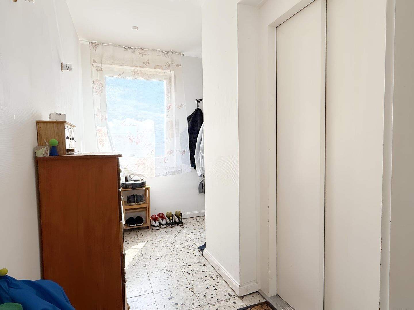 Das Vollbad sowie die vier Schlafzimmer befinden sich in dem vom Wohnraum abgewandten Bereich, auf der rechten Seite der Wohnung. Drei der Zimmer haben einen direkten Zugang zum Balkon und bieten einen schönen Blick in die Baumkronen.