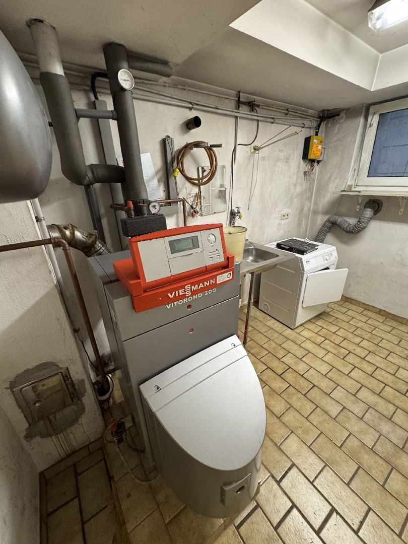 Bauweise: Herkömmlich massiv, einseitig links angebaut. Das Haus ist voll unterkellert. Die lichte Raumhöhe im beträgt ca. 2.30 m. Das Objekt verfügt über zwei Vollgeschosse und ein erneuertes Flachdach.