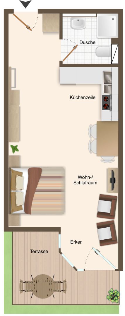 Ein-Raum-Apartment mit insgesamt ca. 36m² Wfl.