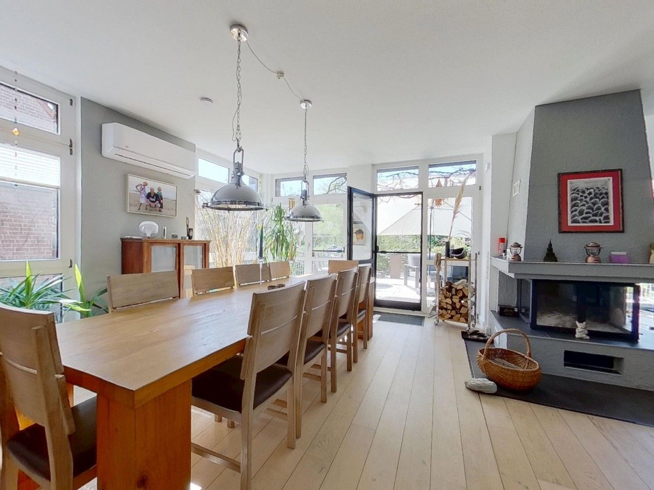 Schiebeanlage mit Panorama-Fenster zum Garten, Isolierverglasung und aufwendigen Plisees
